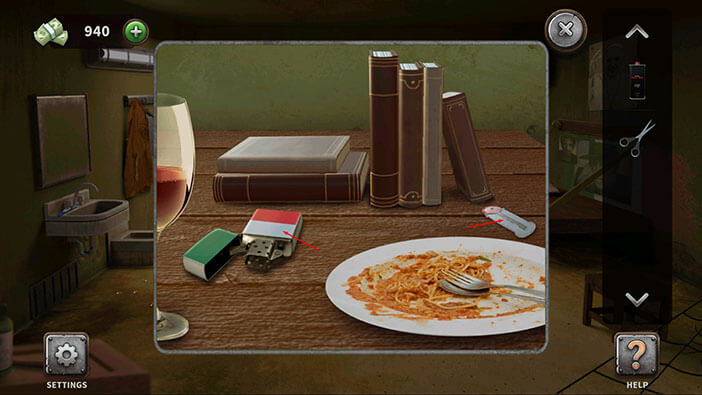 Tap on the zippo lighter and the other item on the right side of the table to pick them up.