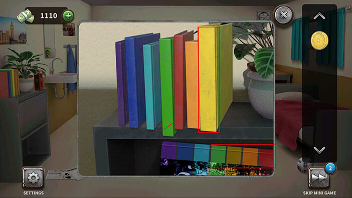 Tap on the yellow book to select it, then tap on the red book to switch their positions, and you will solve this puzzle (the green book is already fourth, the yellow book will go to position number five, the orange book is already sixth, and the red book will go to the position number seven).