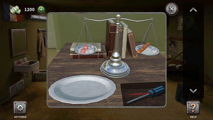 As soon as you balance the weight on the weighing platforms, the secret compartment inside the table will open and you will find a screwdriver. Tap on the screwdriver to pick it up.