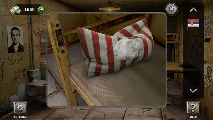 On the left side of the pillow, we can see the second symbol, while on the right side, we can see the Serbian flag. Tap on both items to pick them up.