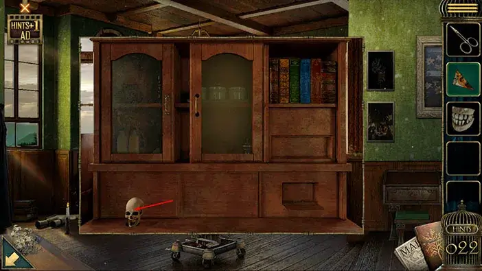 Next, tap on the ostrich that is looking through the window, and you will pick up another “Skull”.