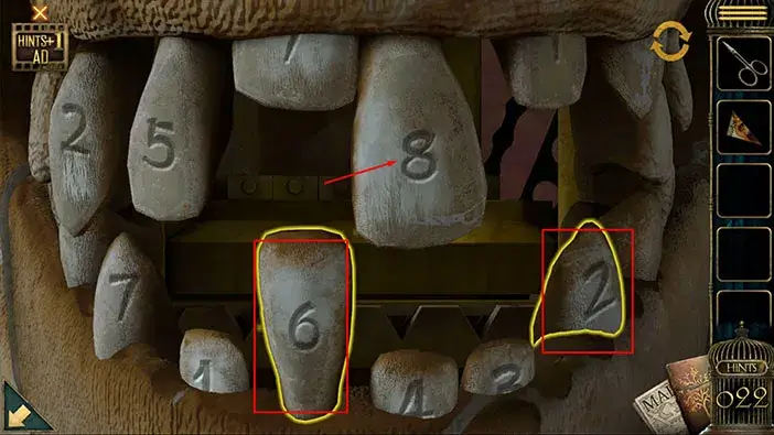 As soon as you arrange the skulls, their eyes will begin to glow. A few moments later, a small compartment at the bottom of the brain will open and inside you will find a “Ring”. Tap on it to pick it up.
