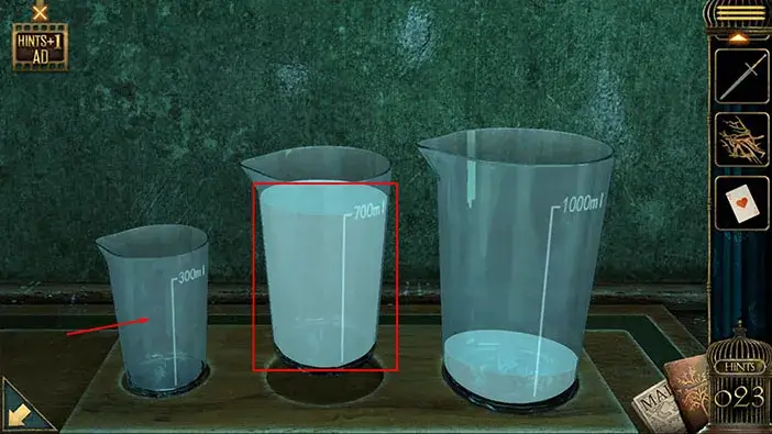 In the cabinet, you will find the “Scissors” and the “Syringes”. Tap on them to pick them up. After that, tap on the arrow in the lower left corner to go back.