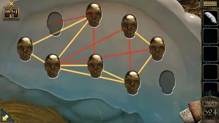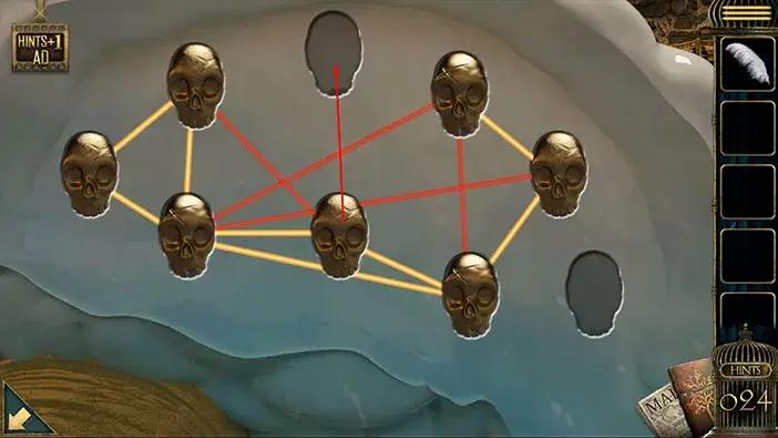 Ok, our next task is to rearrange the skulls. The goal is to make a correct connection between each skull (the connections should be yellow) and we will do this by inserting the skulls into the correct slots.