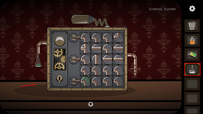 As soon as you enter the correct code, the safe door will open. Tap on the items in the safe to pick them up and “Key” and “Alcohol burner” will be added to your inventory.