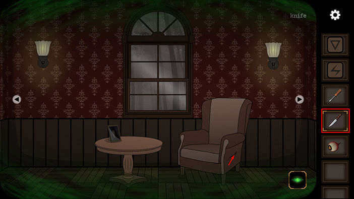 If you pay attention to the armchair, you will notice that it has been stitched up on the right side. So, select the “Knife” from the inventory and use it to cut open the stitched area.
