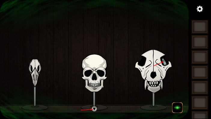 Here, we can see two metal rods with skulls on top of them, but the skull on the middle rod is missing. So, select the “Skull” from the inventory and attach it to the middle rod.