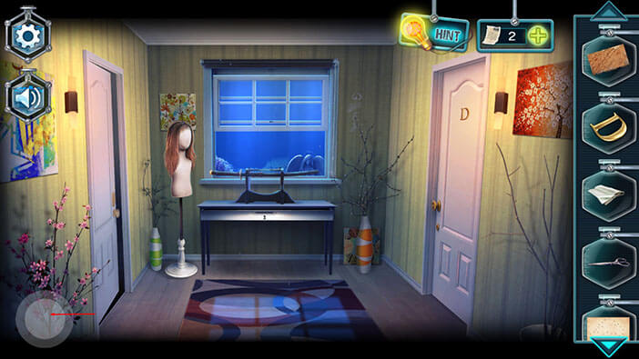 We can see that the door on our right is marked with the letter “D”. So, select the “Bedroom key” from the inventory and tap on the door to unlock it. After that, tap on the door again to proceed into the bedroom.