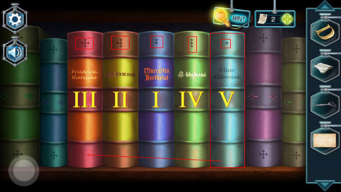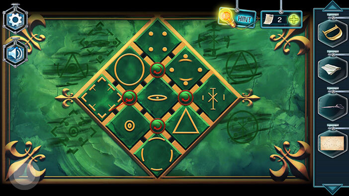 As soon as we rotated the symbols on the disks into the correct position, the hole under the ball opened and the ball fell out. More importantly, we opened the secret compartment below the frame. Tap on the secret compartment to take a closer look at it, then tap on the scissors and the “Elegant scissors” will be added to your inventory.