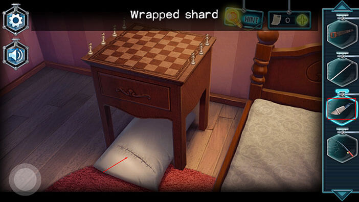 After that, select the “Rag” from the inventory and tap on glass shards. Our character will use the rag to pick up one of the shards, and “Wrapped shard” will be added to your inventory.