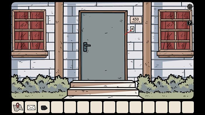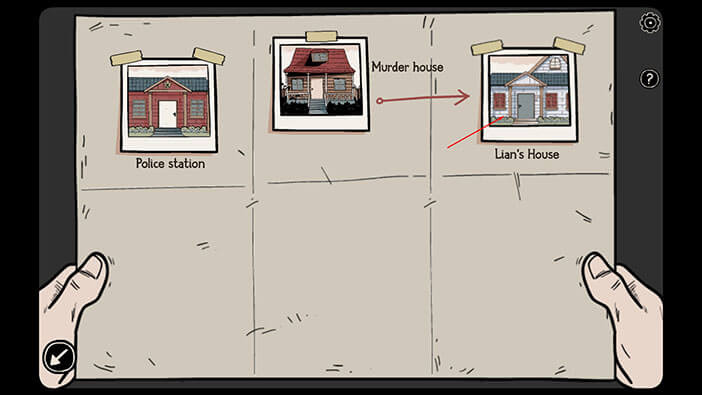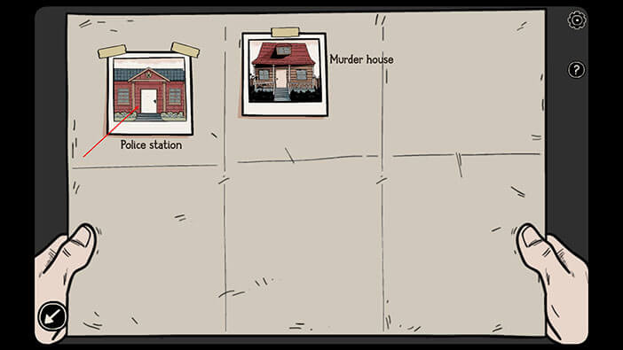 Ok, we should now go back to the “Murder House” because we can use “Card with holes” to solve one more puzzle. So, tap on the map in your inventory to select it, and then tap on the “Murder House”.