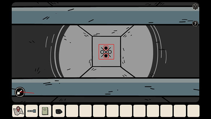Here we can see 9 buttons, arranged in a 3×3 grid. Tap on the “Card with holes” in your inventory to select it, then tap on the grid.