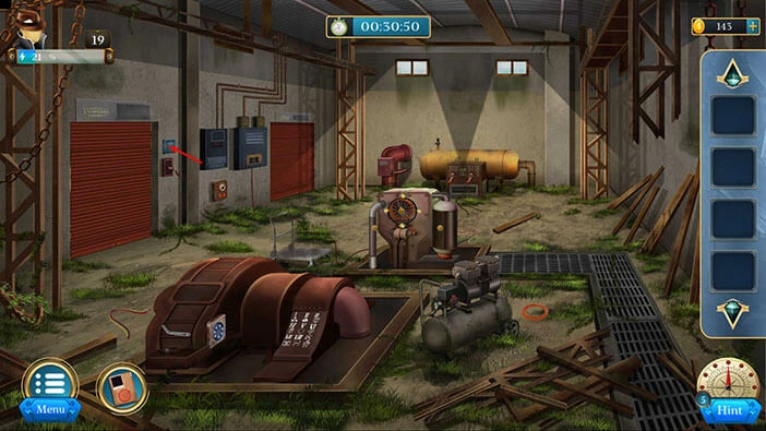 Our objectives are to “Collect the belt” “Climb up the chain” and “Open the locker”. Tap on the “X” button to go back.