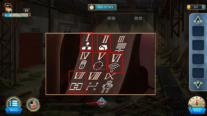 Here, you will discover the five symbols that represent a hint for the next puzzle. Let’s memorize/write down these symbols.