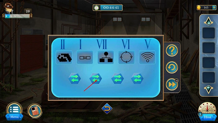 Here, we have another puzzle. Our task is to use the wrench to remove the screws, by tapping on the correct arrows. We will do this puzzle in several steps. Let’s begin.