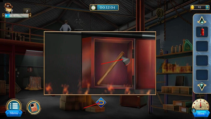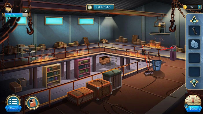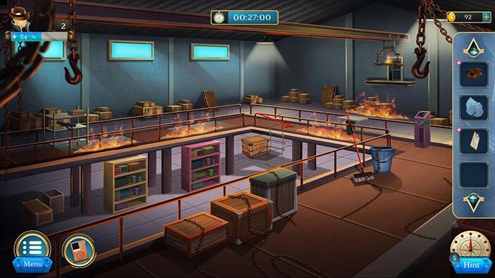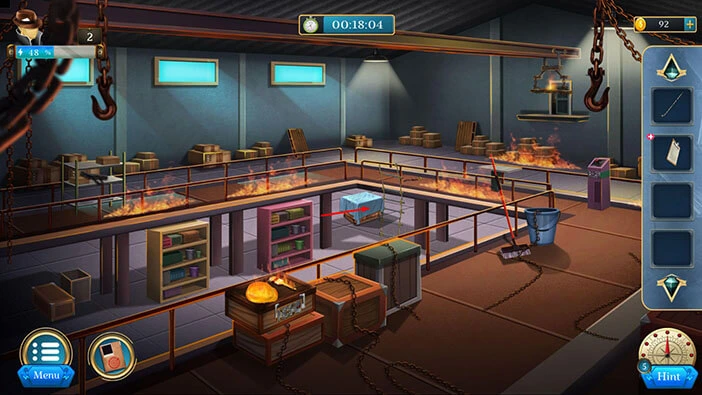 Hello everyone and welcome to the walkthrough for the second level of “Room Escape: Detective Phantom”. In the second level, we are trapped in the burning warehouse, and our task is to follow the suspect because he knows how to escape from the building.