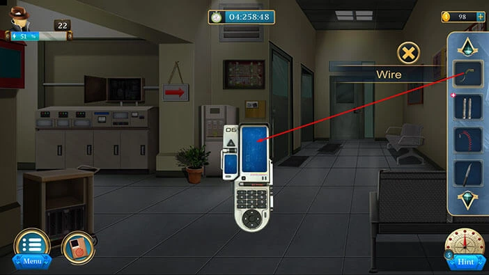 In the “Bag” you will find a “Wire” Let’s tap on it to pick it up. After that, tap on the “X” button to close this window.