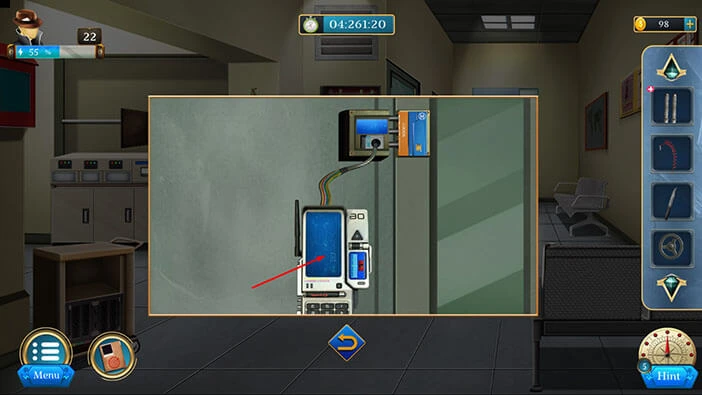 In the safe, you will find a “Reading Machine”. Let’s tap on it to pick it up. After that, tap on the arrow at the bottom to go back.