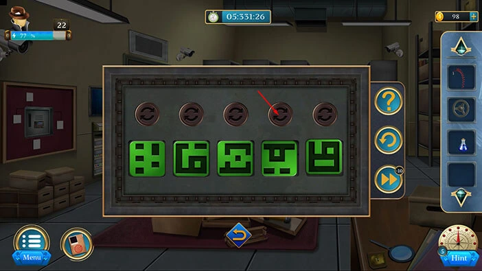 Let’s tap two times on the fourth arrow to rotate the symbol in the fourth slot.