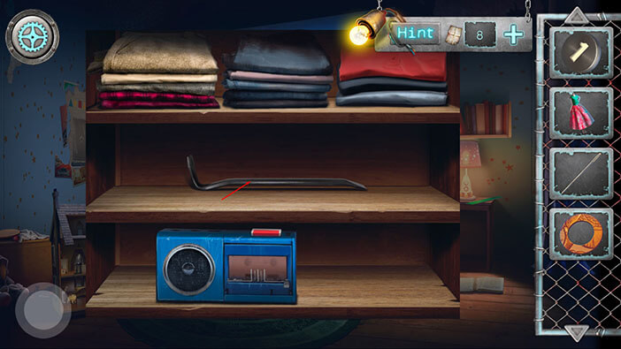 After some disturbing sounds, the secret compartment inside the radio will open. Tap on the item inside the compartment to pick it up and “Key I” will be added to your inventory.