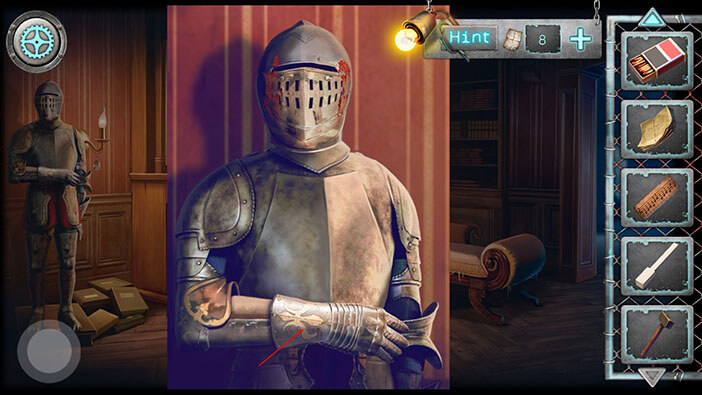 Also, we can see that something is hidden inside the couch. So, select the “Folding knife” from the inventory and tap on the couch to cut it open.