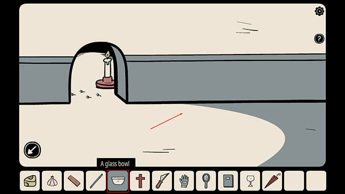Now, let’s set the trap. First, select the “Glass Bowl” from the inventory and tap on the right of the mouse hole to place it.