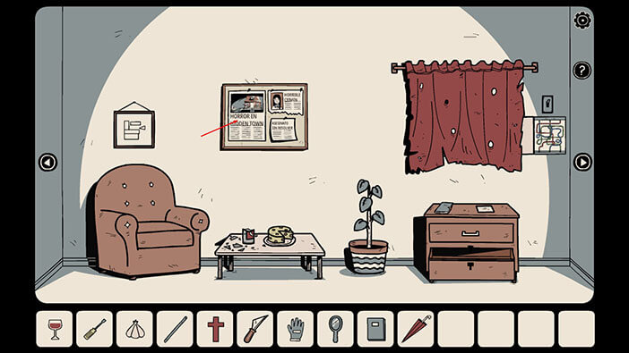 Our character will discover the crucifix hidden inside the armchair. Tap on it to pick it up, and a “Wooden Cross” will be added to your inventory.